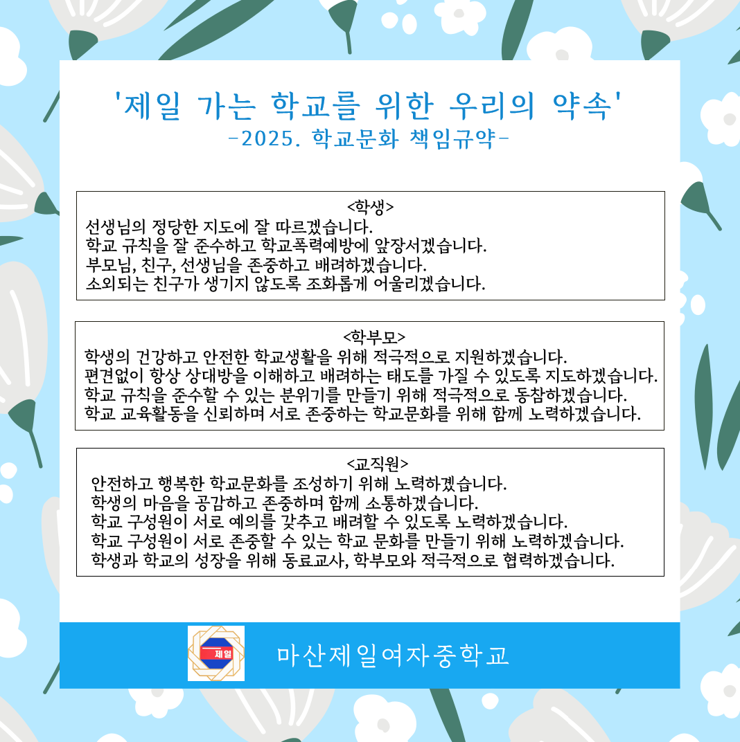 교육 공동체가 마음을 모아 2025학년도 '제일 가는 학교를 위한 우리의 약속' (前 학교문화 책임규약)을 추진하였습니다.