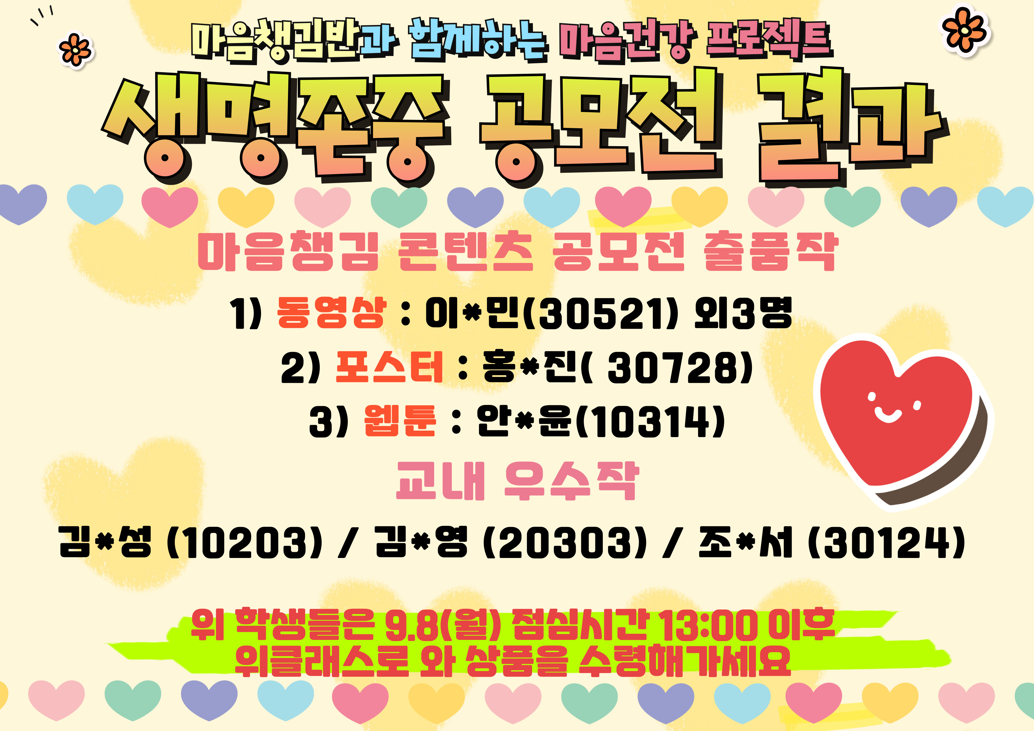 2학기 상담주간을 맞아 마음아 안녕이라는 주제로 3가지 행사를 진행하였습니다.